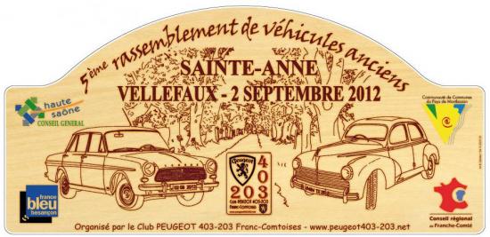 Elles ont gravi la colline Sainte Anne de Vellefaux comme chaque année, et les quelques deux cent voitures anciennes ont une nouvelle fois remporté un grand succès le 2 septembre 2012, pour la cinquième édition du rassemblement des véhicules anciens organisé par le Club Peugeot 403-203 Franc-Comtoise de Filain. Au côté des sonneurs de trompes de chasse du val de Gray, le club 205 France était l’invité d’honneur cette année, une voiture au « sacré numéro » qui fêtera l’an prochain ses trente ans. Fort succès pour le camping rétro qui accueillait cette année des caravanes exceptionnelles telle qu’une Notin de 1961, un couple avait même fait le déplacement de l'Isère pour participer au camping dès le vendredi. Les quelques deux mille cinq cent visiteurs ont su une nouvelle fois apprécier cette manifestation, notamment, avec la bénédiction des véhicules et des conducteurs par l’abbé Arthur Daval.